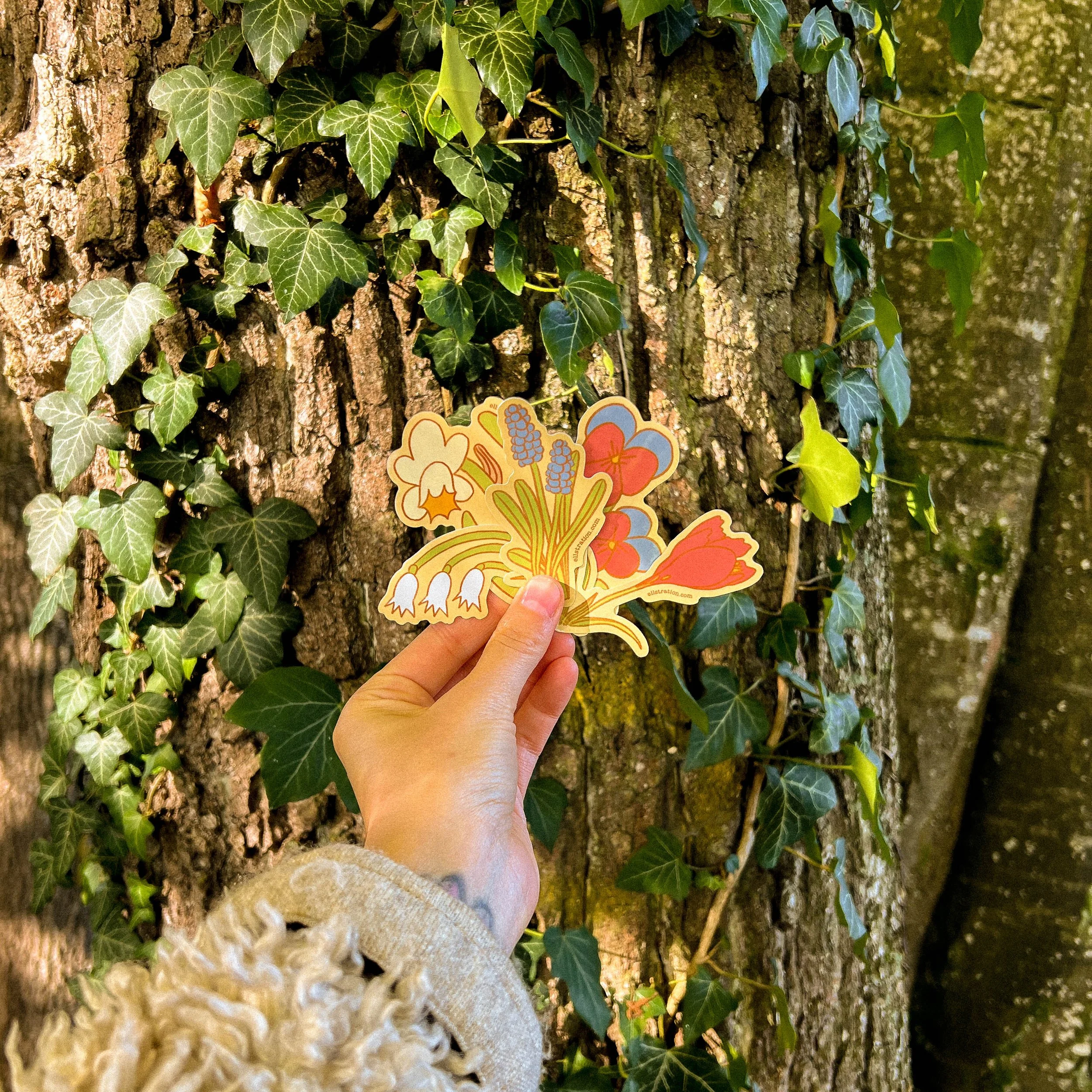 The First to Bloom sticker bundle is a gentle reminder that blooming is possible, even in the cold. It features five spring flowers: grape hyacinth, pansy, crocus, daffodil and snowdrop - each blooming despite frost.
